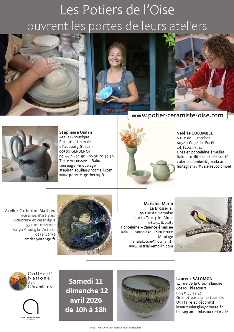 L’Association des Potiers et Céramistes de l’Oise vous invite au salon de la céramique contemporaine à la Maladrerie Saint Lazare à Beauvais fin novembre ou début décembre.
